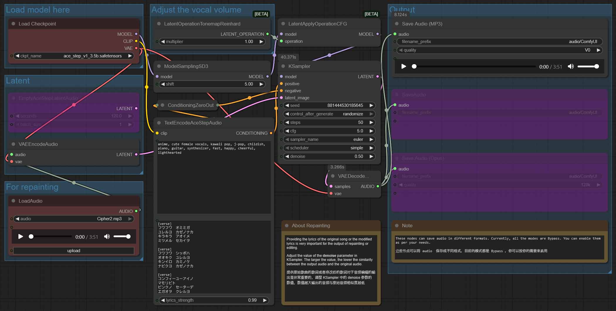 You can also utilize third-party nodes/workflows, such as the ones made for the cover/repaint audio-to-audio tasks. One of those was developed by RyanOnTheInside.